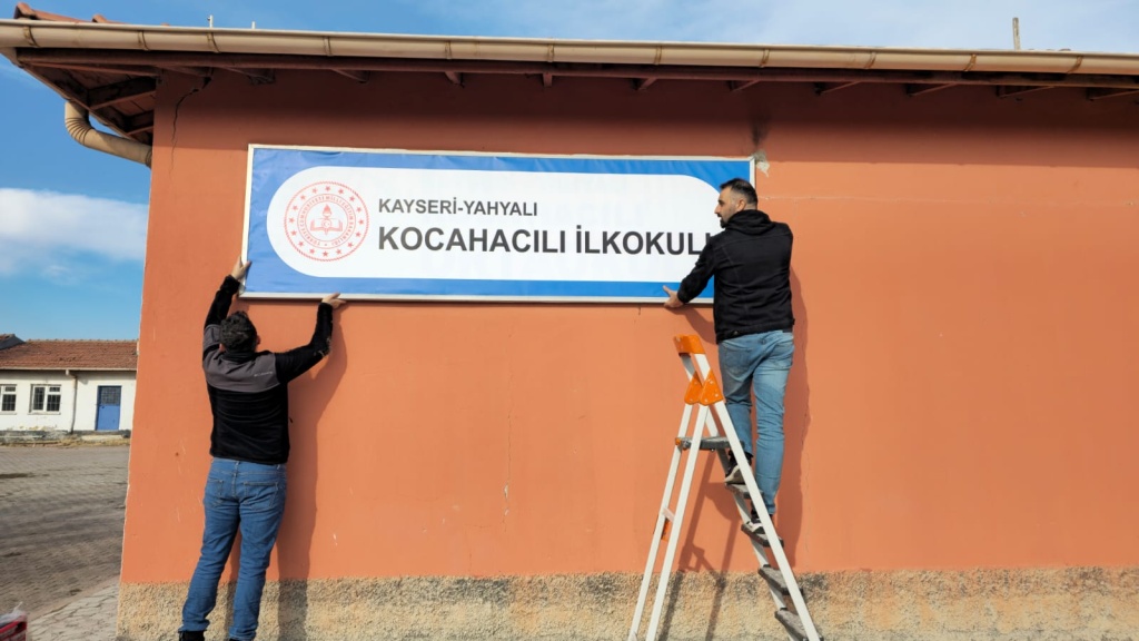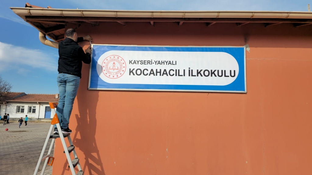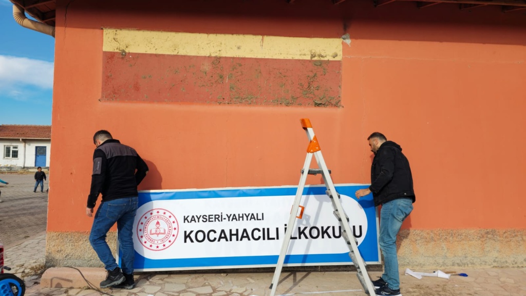 Okulumuzda çalışmalarımız hızla devam ediyor. Yeni tabelamızla birlikte kocahacılı ilkokulumuz yenilenmeye devam ediyor. Emeği geçen öğretmenlerimize teşekkür ederiz.